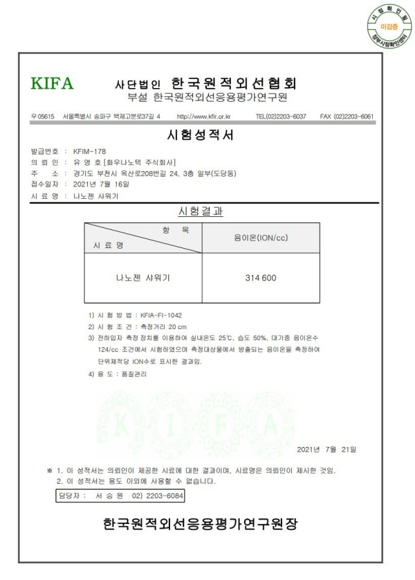 测试机构:韩国远红外线协会附属应用评估研究院