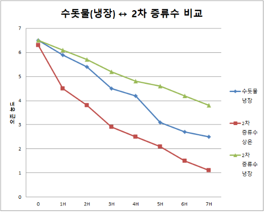 与使用常温的二次蒸馏水相比,可以确认数值更好。