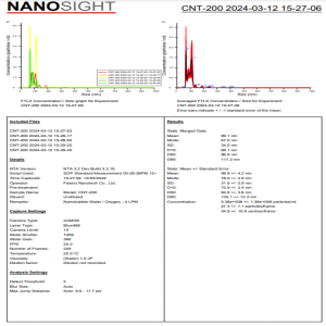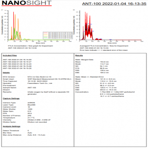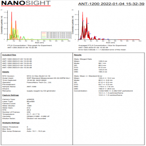 纳米气泡发生装置通过纳米粒子分析设备确认了纳米气泡的大小和发生量。 (测量设备: Nanosight LM10 (Malvern公司), 激光类型: Blue488)