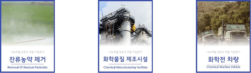 臭氧是地球上第二强的杀菌剂,其杀菌力是自来水消毒的氯消毒剂的7倍。 此外,臭氧是通过氧化作用杀菌后还原为氧气的环保氧化剂,同时在空气中过量暴露时会危及生命的危险物质。因此,通过适当的使用来最大化效果是很重要的。